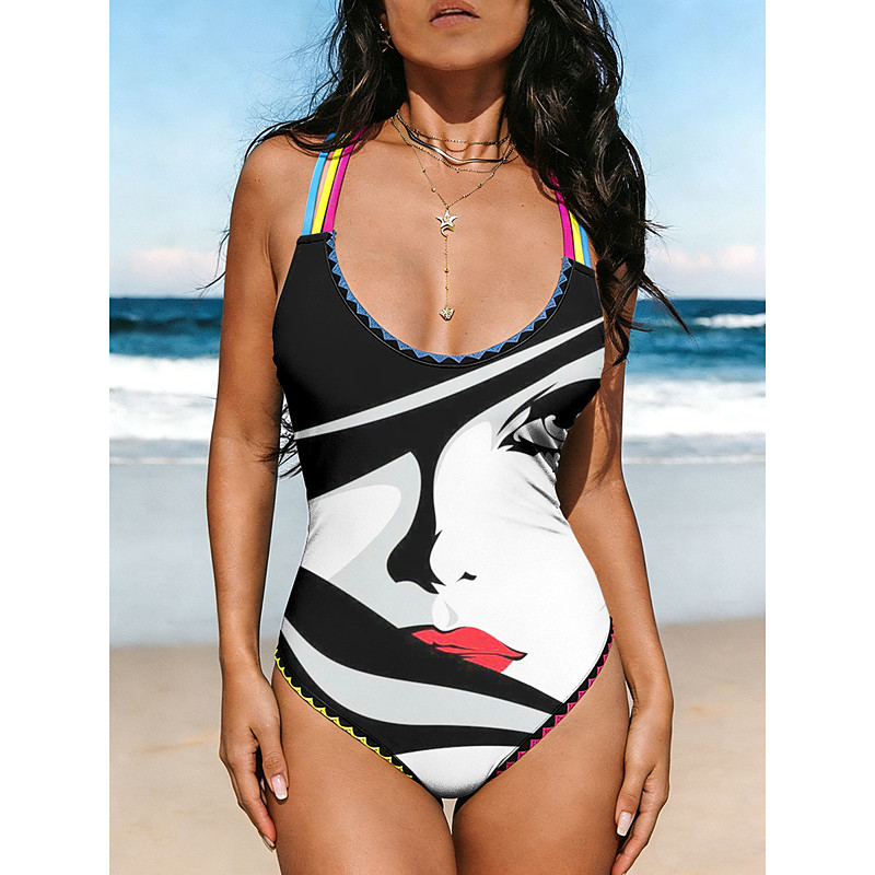 Women's One Piece Swimsuit Slimming Monokini High Cut Tummy Control High Waist Slim Backless Vacation Vintage Graphic Geometric U Neck Sleeveless Bathing Suits