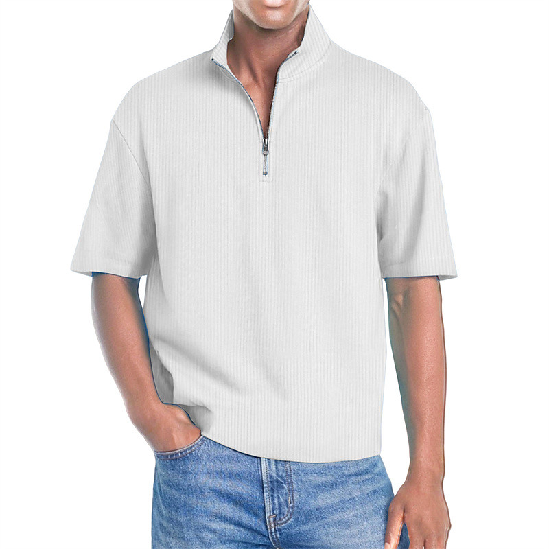 Men's Polo Shirts Quarter Zip Polo Daily Wear Date Quarter Zip Short Sleeve Fashion Basic Plain Zipper Summer Regular Fit Wine Black White Navy Blue Purple Brown Polo Shirts