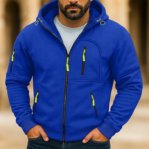 Per uomo Felpa con cappuccio Felpa con cappuccio a zip intera Giacca con cappuccio Giacca in pile Nero Bianco Rosso Blu marino Blu Reale Con cappuccio Liscio Sportivo Giornaliero Per eventi Vintage