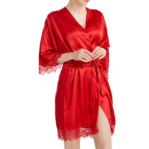 Per donna Accappatoio Casual Morbido Raso Colore Puro Pizzo Senza schiena Quotidiano Casa Da letto Mezza Manica Scollo a V Nero Bianco Rosa Vino Blu marino Estate Vestibilità comoda