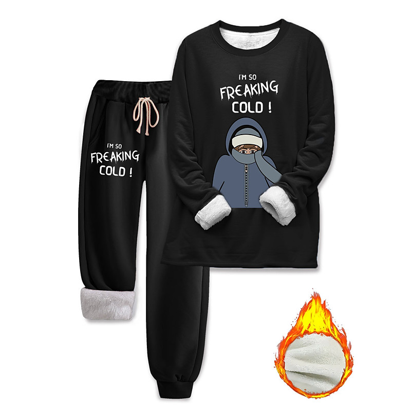 Women's Elegant Warm Fashion Two Piece Sets Tracksuit Pants Sets Long Sleeve Bishop Sleeve Crew Neck Round Neck Graphic Letter Portrait Print Outdoor Vacation Daily Black Pink Dark Pink Spring