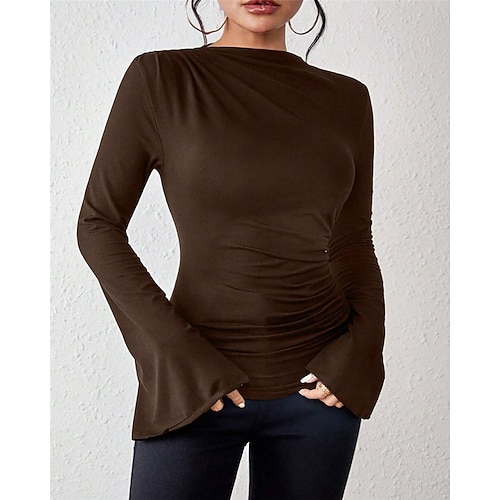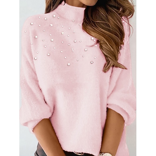 Per donna Blusa Tinta unica Elegante Casual Manica Lunga Collo alto Top Regolari Quotidiano Con perline Nero Giallo Rosa Rosso Marrone Primavera Autunno Inverno