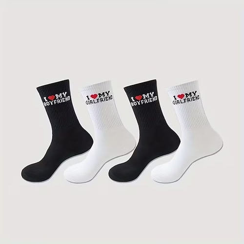 Calze per coppie per San Valentino in pacco da 2 calze traspiranti anti-odore con assorbimento dell'umidità a stampa con lettere per donne