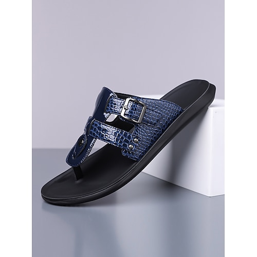 Blaue Herren-Sandalen mit Krokodilmuster – stilvoll und bequem mit verstellbarer Schnalle, ideal für Freizeitaktivitäten, Sommerveranstaltungen und Hochzeiten.