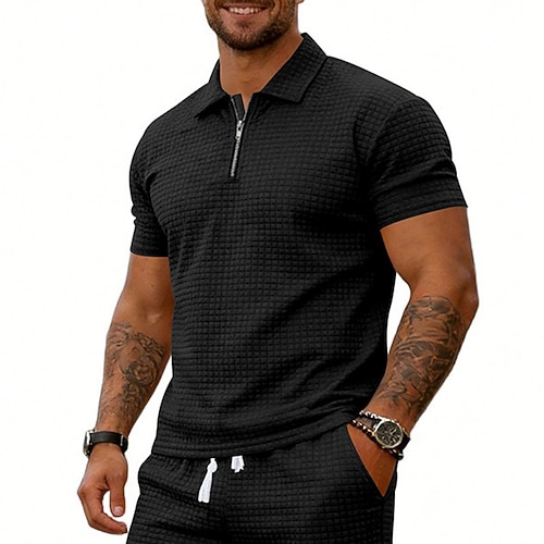 Per uomo Magliette Polo a Nido d'Ape Polo con zip Casuale Quotidiano Zip a un quarto Manica Corta Moda Semplice Cerniera Estate Primavera Vestibilità comoda Nero Bianco Verde militare Kaki Grigio
