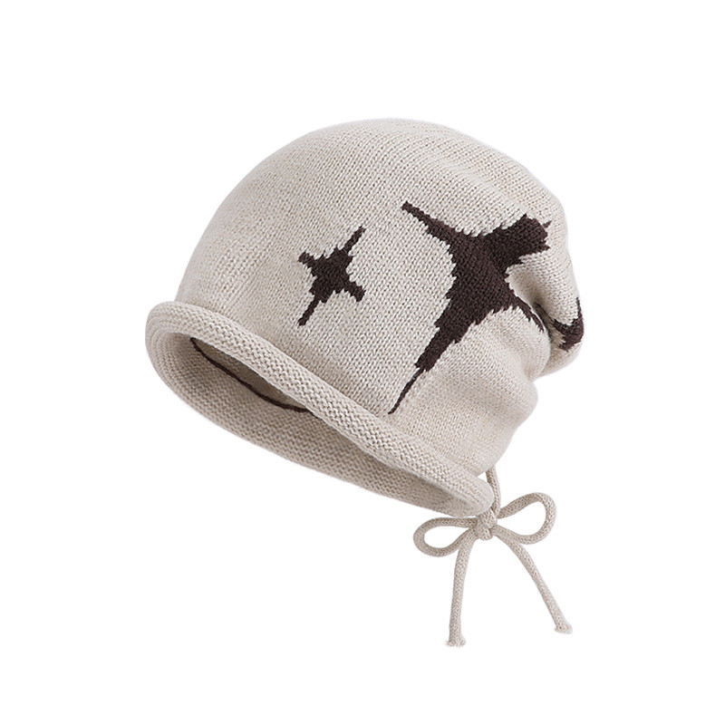 Autumn Winter Korean Style Knitted Hat for Women Folded Edge Beanie Warm Ear Cover Skull Cap Slim Face Fluffy Soft Woolen Stackable Winter Headwear