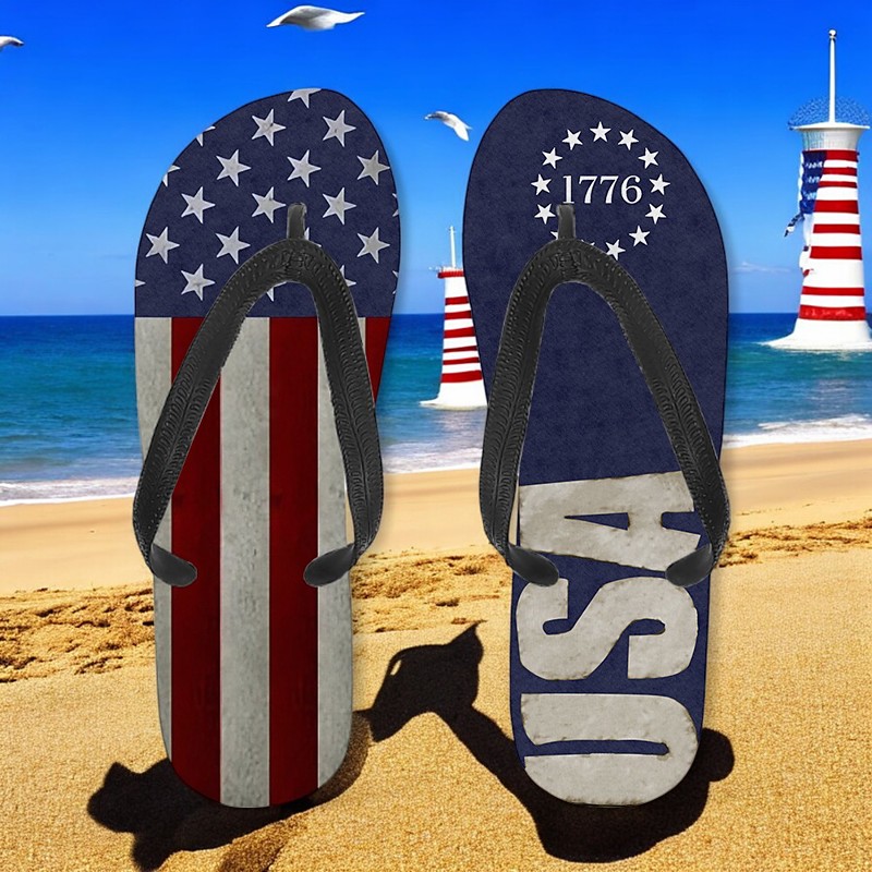 Men's American Flag Flip-Flops – Patriotic Stars Stripes Sandals for Summer, Independence Day Beachwear