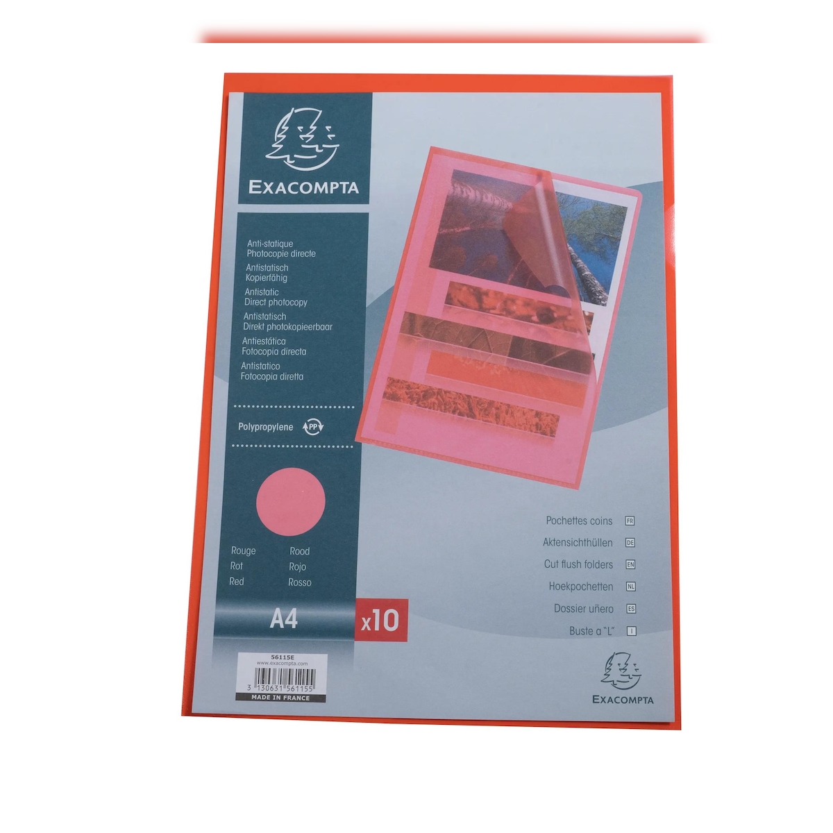 Exacompta 56115E 10x Packung mit 10 Aktensichthüllen aus genarbtem PP 120µ, für Format DIN A4 - Rot