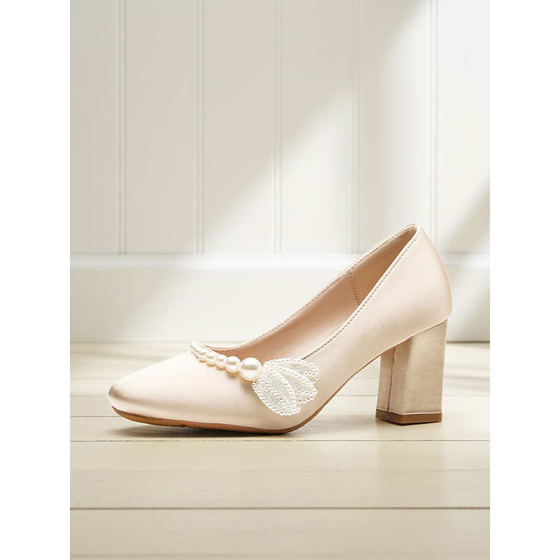 Women's Elegant Block Heels with Pearl Decoration – Square Toe, Vintage Style, Comfortable Pumps for Weddings, Parties and Formal Occasions