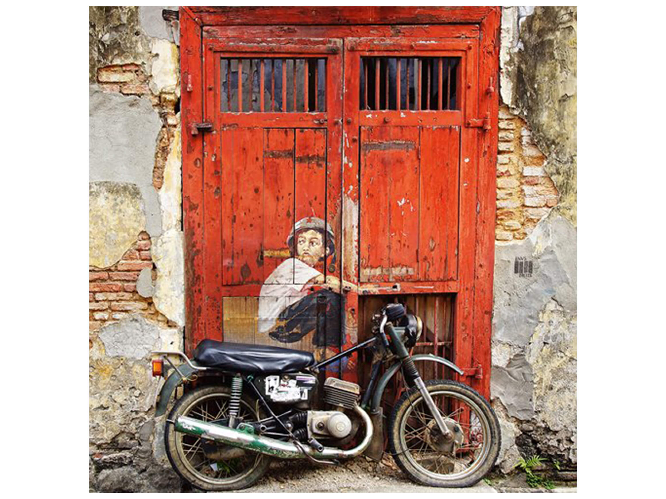image LAND Digitaldruck auf Glas Street Art mit Moped | Schubiger Möbel