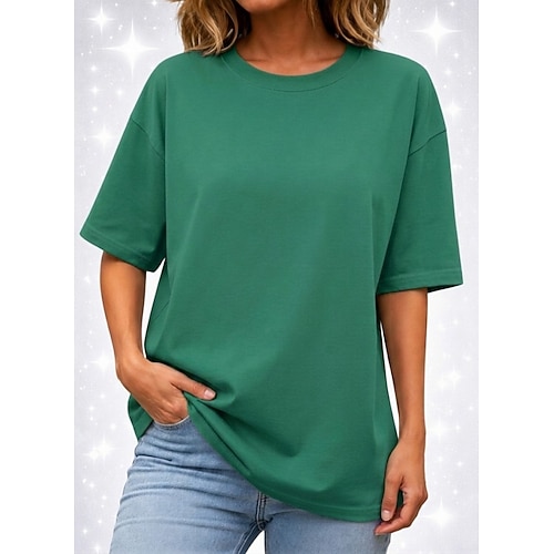T-Shirt Oversize da Donna in 100% Cotone Tee T-Shirt Monocromatica Moda Classica Casual Manica Corta Collo Regolare Top Regolari Sport Uscita Giornaliera Nero Bianco Rosa Verde Militare Blu Navy