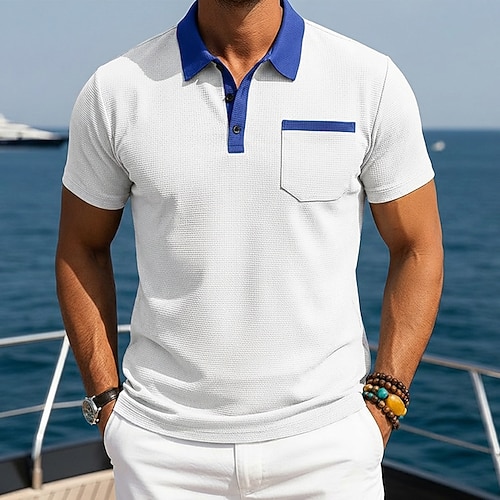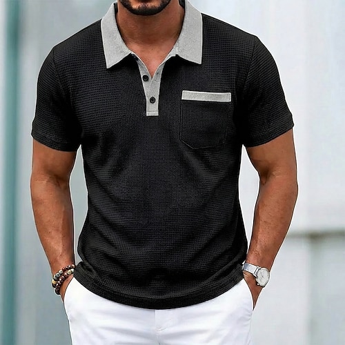 Per uomo Maglia da golf Polo a Maglia Waffle Casuale Affari Classico Manica Corta Moda Moderno Tinta unica Tasca Blocco di colore Estate Primavera Vestibilità regolare Nero Bianco Blu reale Verde