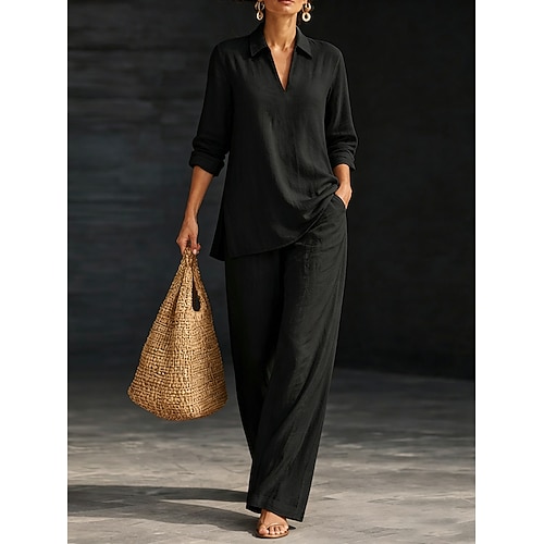 Per donna Set di biancheria in cotone Set da due pezzi Blusa Senza Maniche Manica Lunga Girocollo Scollo a V Tinta unica Semplice Elegante Moda Streetwear Casuale Quotidiano All'aperto Nero Bianco