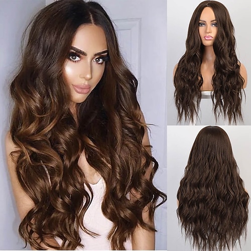 parrucca bionda lunga ombre per le donne 26 pollici parrucche ondulate bionde sintetiche parte centrale capelli resistenti al calore lunga parrucca bionda per abbigliamento da festa quotidiano