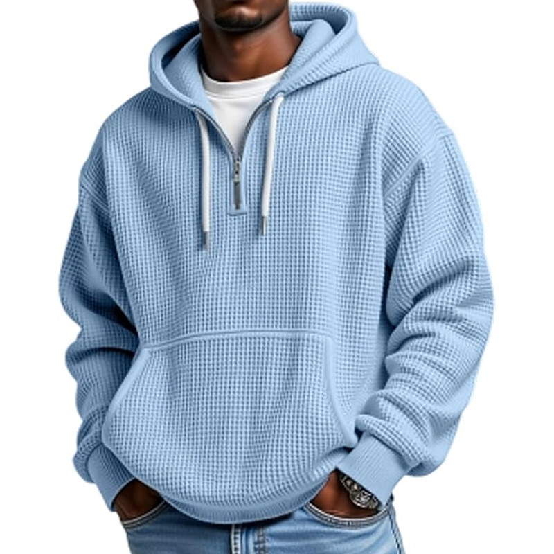 Men's Hoodie Waffle Hoodies Quarter Zip Hoodie Apricot White Light Green Army Green Red Hooded Plain Kangaroo Pocket Textured Casual Daily Sports Outdoor Streetwear Cool Sportswear Fall Spring