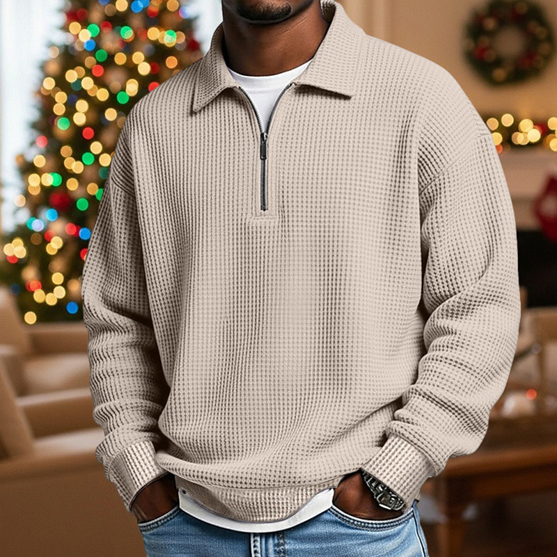 Men's Waffle Polo Shirts Textured Outdoor Causal Quarter Zip Long Sleeve Fashion Modern Solid Color Textured Knitted Spring Fall All Seasons Loose Fit Black Navy Blue Dark Green Purple Khaki Light