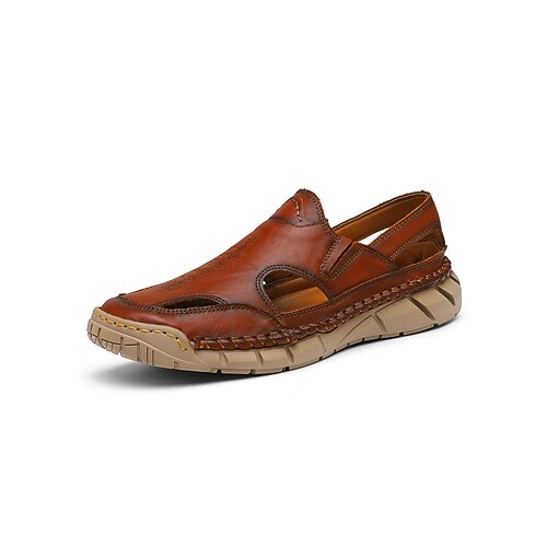Sandali estivi da uomo in similpelle marrone, comodi e traspiranti, ideali per viaggi, spiaggia e attività all'aperto.