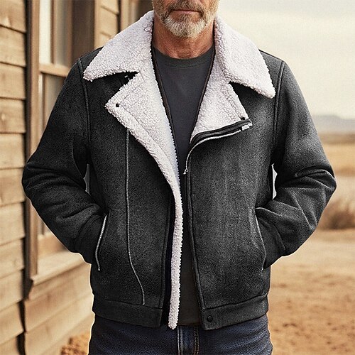 Per uomo Giacca in finta pelle scamosciata Giacca Invernale Giacca in Pile Giacca Sherpa Vacanza Quotidiano Calore Termico Tasca Pile Autunno Inverno Semplice Moda Streetwear Bavero Regolare Nero
