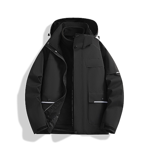 Men's Hiking Jacket Fleece Jacket Winter Coat 3 in 1 Jacket Winter Outdoor Thermal Warm Top Black White Orange Green Grey