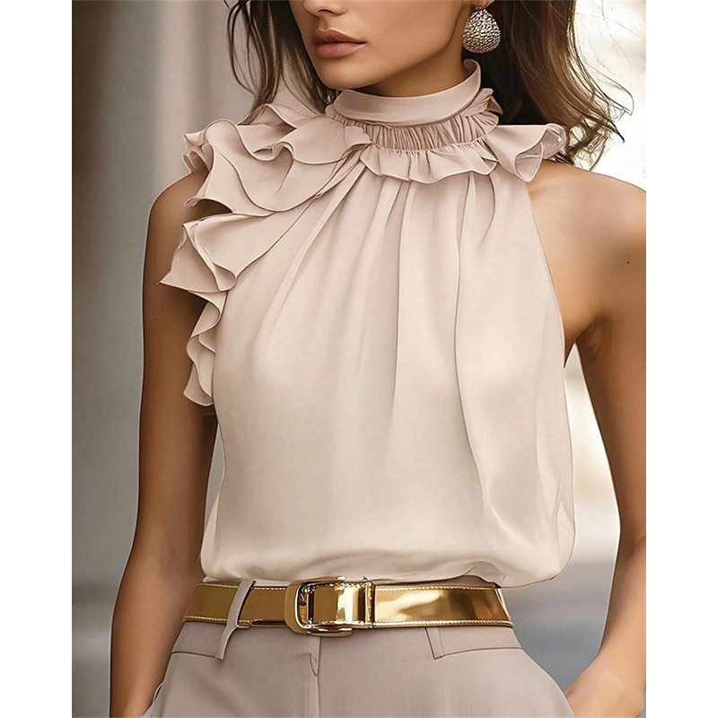 Women's Summer Tops Blouse Dressy Tops Solid Color Plain Elegant Vintage Cute Sleeveless Halter Neck Regular Tops Daily Work Holiday Ruched Ruffle Patchwork Black Red Brown Apricot Summer Spring