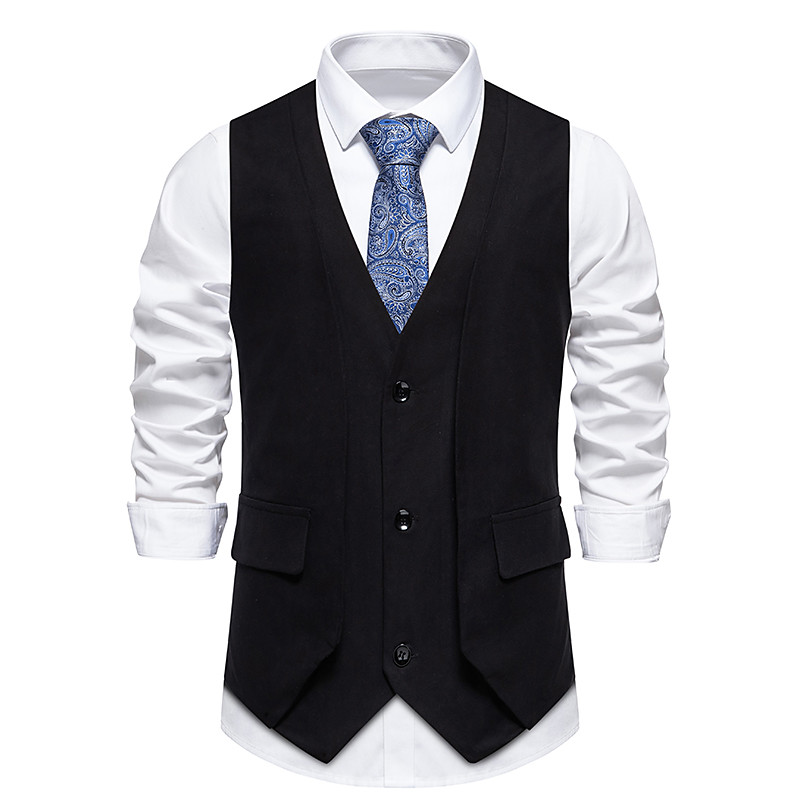 Men's Vest Gilet Daily Wear Vacation Going out Vintage Fashion Spring Fall Button Polyester Comfortable Plain Single Breasted V Neck Regular Fit Black Khaki Coffee Vest