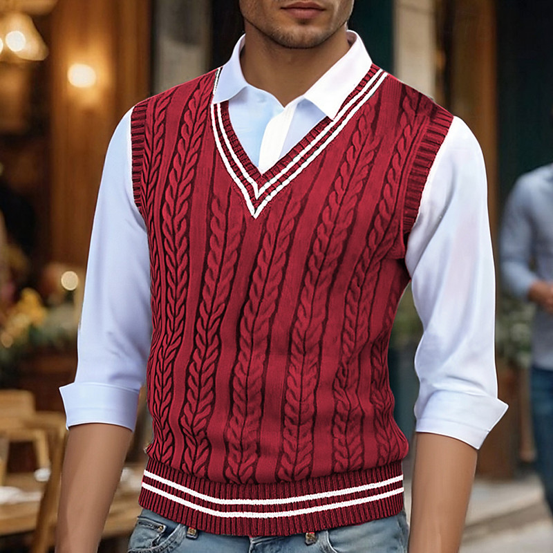 Men's Sweater Vest Dress Sweater Pullover Sweater Jumper Vest Knit Sweater Ribbed Cable Knit Regular Tops Knitted Color Block V Neck Fashion Casual Vacation Daily Wear Clothing Apparel Fall Winter