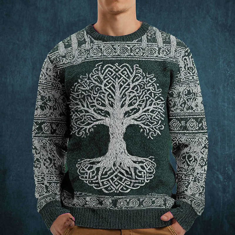 Men's Viking Tree Of Life Pullover Sweater Jumper Knitwear Crewneck Retro Vintage Casual Vacation Daily 3D Print Knitting Keep Warm Long Sleeve Spring Fall Winter Black Brown Green