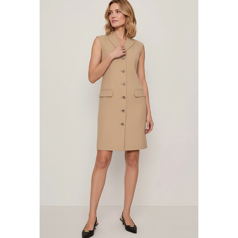 Women's Tuxedo Dress Sheath Business Office Work Stretch Fabric Elegant Simple Sleeveless Above Knee Notch lapel collar Single Breasted