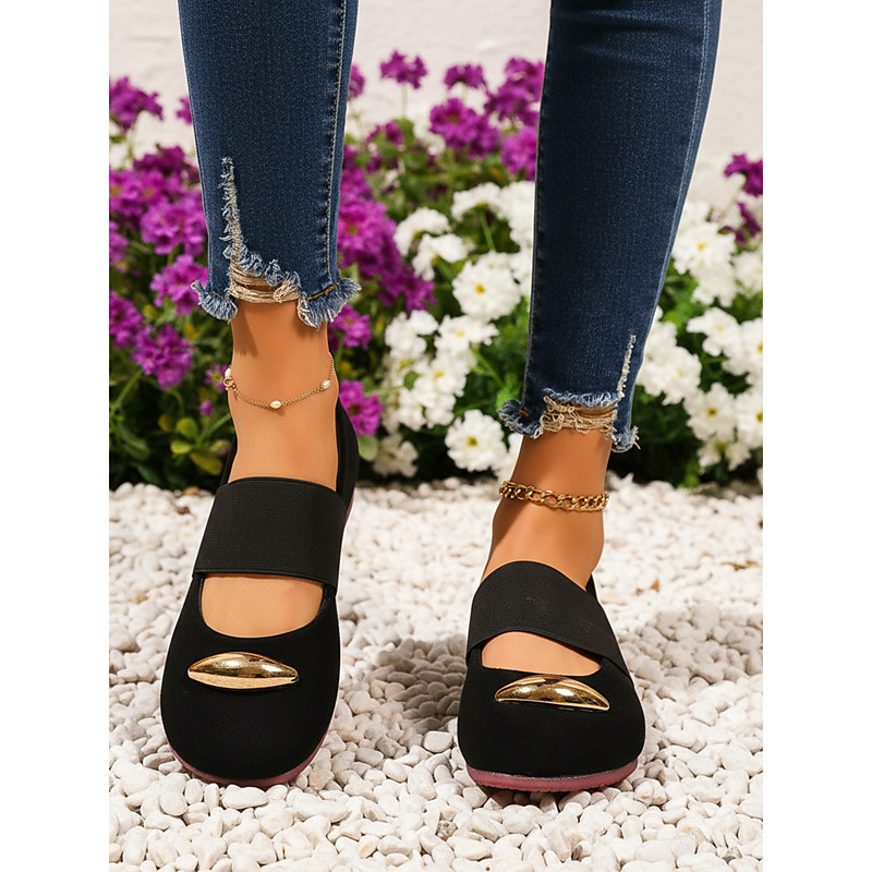 Women's Brown Elastic Strap Wide-fit Mary Jane Flat Shoes, Stylish Slip-Resistant Comfort for Work, Errands and Fall Casual Looks