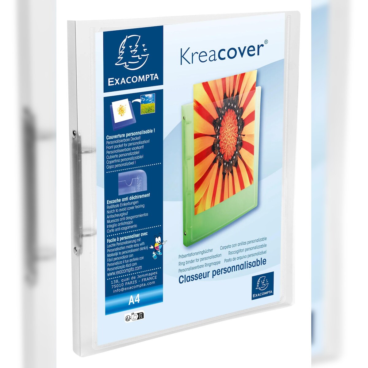 Exacompta 54960E 25x Ringbuch aus PP 500µ, 2 Ringe 15mm, Rücken 20mm, 32x25cm für DIN A4, Chromaline Kreacover - Transparent