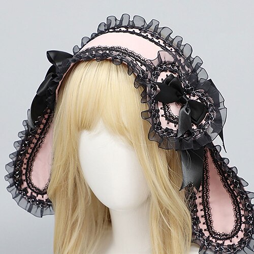Graziosa fascia per capelli con orecchie da coniglio in stile lolita – orecchie da coniglio con fiocco, fascia per capelli in stile lolita per cosplay, feste e accessori moda