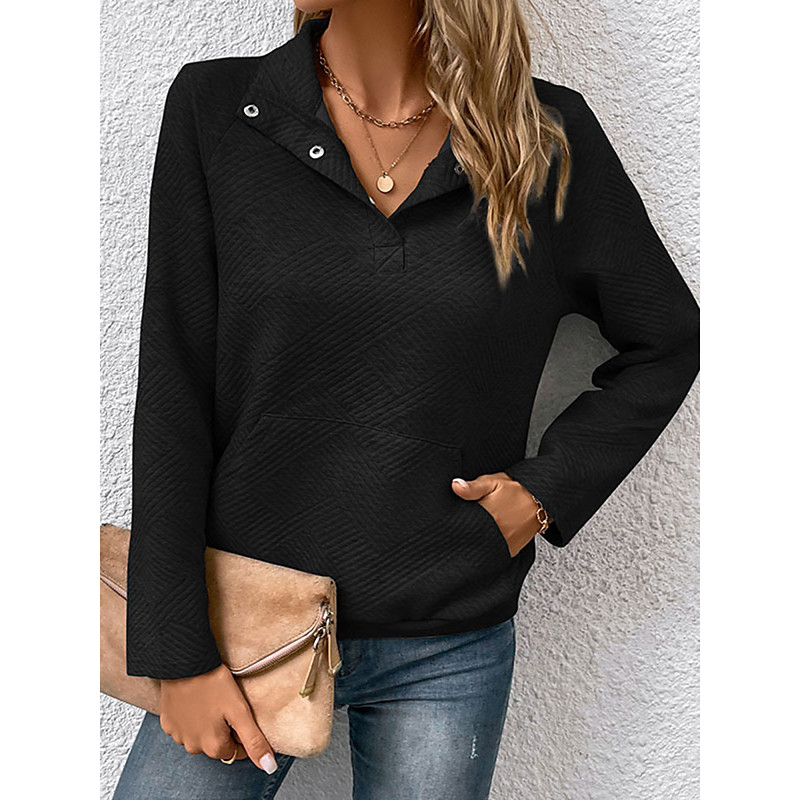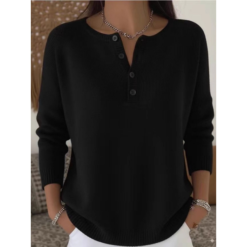 Women's Sweater Casual Soft Pure Color Ribbed Crew Neck Buttons Knitted Long Sleeve Regular Tops Knit Outdoor Daily Weekend Black White Fall Winter