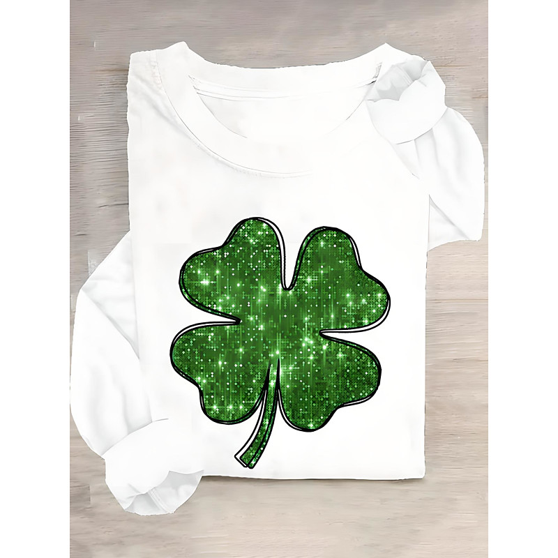 St. Patrick Women's T Shirt Shamrock Plants Casual Long Sleeve Crew Neck Regular Tops Daily Print Black White Spring Fall