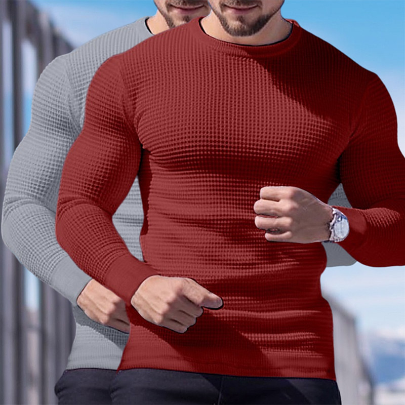 2 Piece Men's Waffle Shirt T Shirt Tee Top Long Sleeve Shirt Long Sleeve Crew Neck Crewneck Fall Spring Fall Plain Fashion Designer Basic Knitted Vacation Street Casual Top Tee for Men