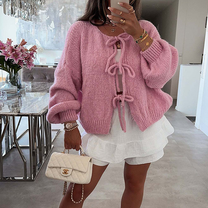 Women's Sweater Cardigan Streetwear Casual Solid Color Crew Neck Knitted Long Sleeve Regular Tops Knit Daily Holiday Going out Yellow Pink Fall Winter