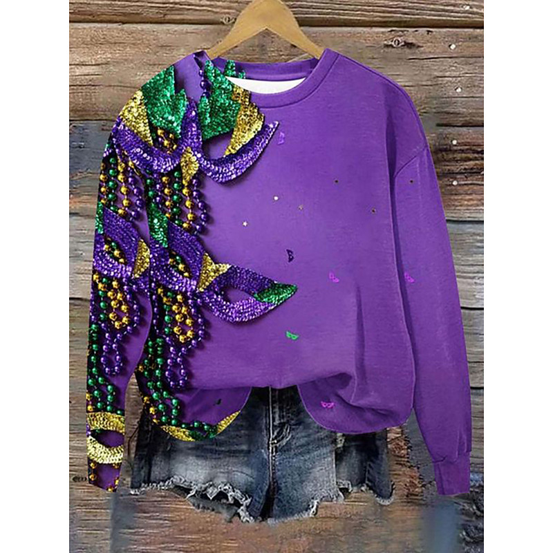 Carnival Women's Pullover Sweatshirt Graphic Casual Long Sleeve Crew Neck Regular Tops Casual Street Dailywear Yellow Purple Green Spring Fall Winter