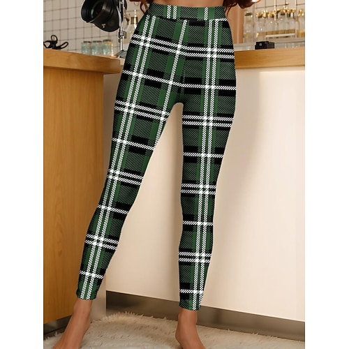Per donna Leggings Vacanza Vintage Moda Lunghezza alla caviglia Vita Alta Grafico Geometrico A quadri Stampa Morbido Traspirante Elasticizzato Quotidiano All'aperto Verde translucido Nero e bianco