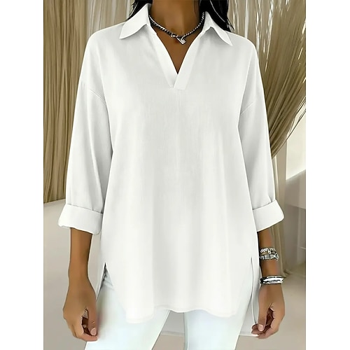 Per donna Blusa Tinta unica Elegante Essenziale Casual Manica Lunga Colletto a Camicia Top Regolari Quotidiano Lavoro Blu Bianco Giallo Rosa Rosso Estate Primavera Autunno
