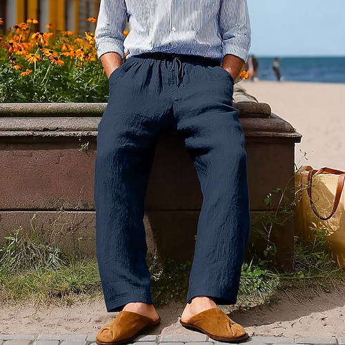 Herren Leinenhosen Hose Sommerhose Baggy-Hosen Kordelzug Elastischer Bund Gerader Schnitt Einfach Komfort Atmungsaktiv Volle Länge Heim Täglich Ferien Urlaub Mode Denim Blue Hellgrün Unelastisch