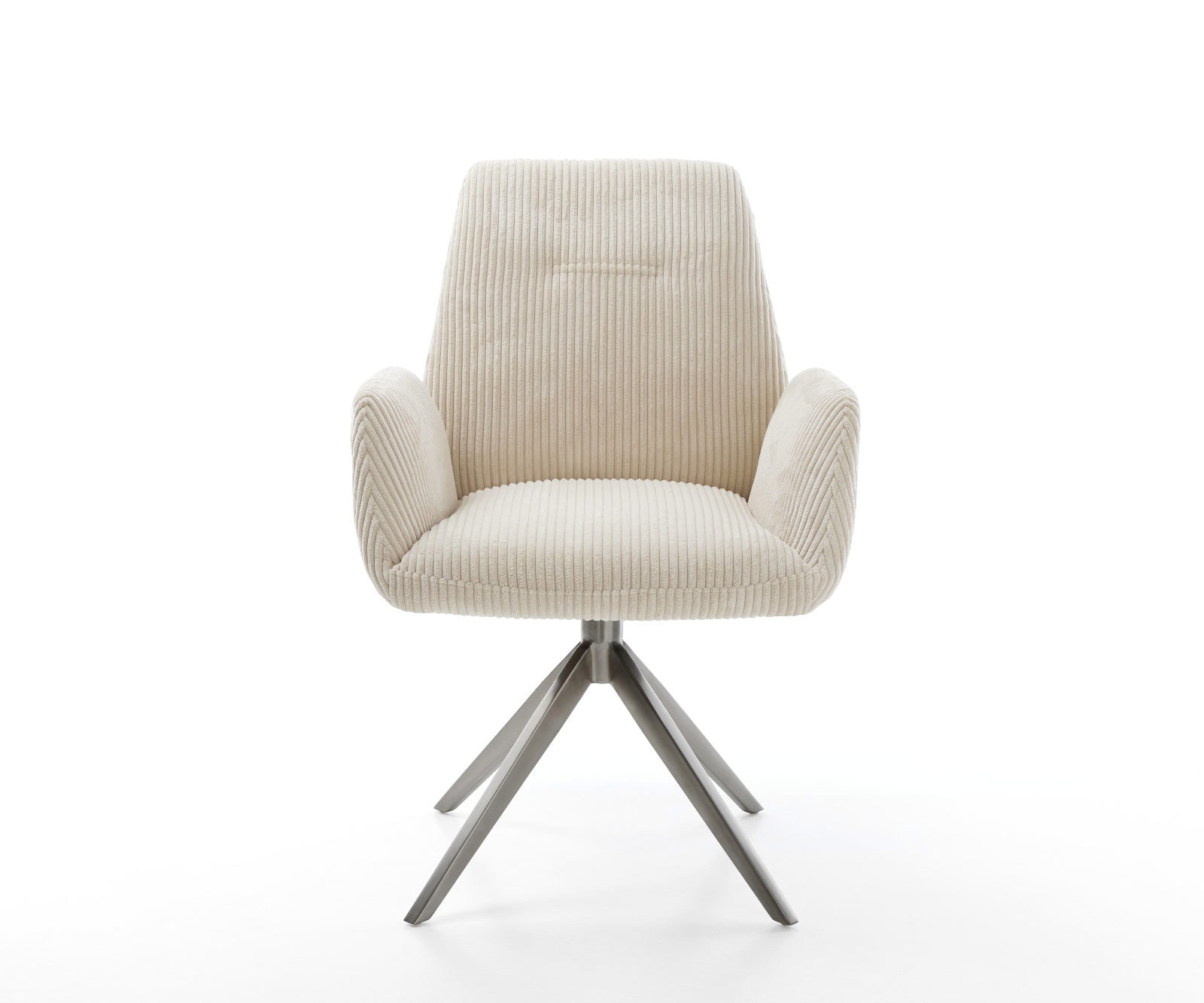 DELIFE Eetkamerstoel Abelia-Flex met armleuning echt leer zwart kruisframe breed roestvrij staal