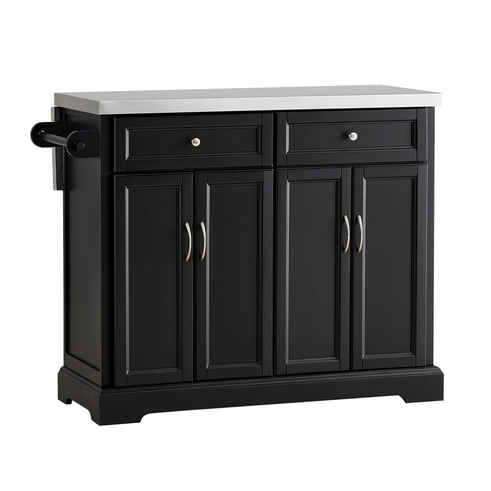 Isola cucina con ruote nera in mdf e acciaio