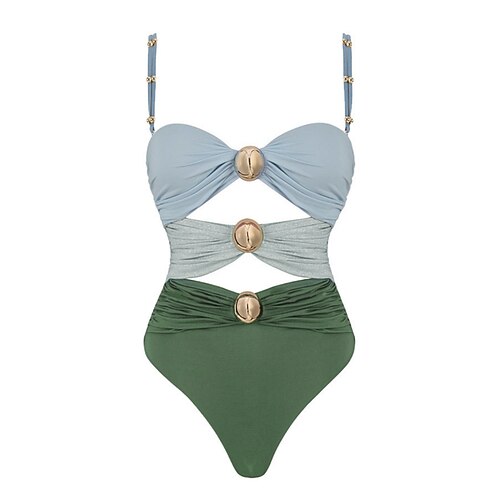 Costume da bagno intero da donna arricciato sexy con ritaglio monokini controllo della pancia alta vita schiena scoperta per vacanze in spiaggia color block scollatura a V senza maniche