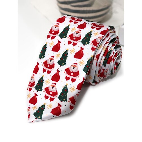 cravatte natalizie in poliestere da uomo: motivi natalizi con Babbo Natale, pupazzo di neve e motivi natalizi, perfetti per feste di Natale e occasioni festive