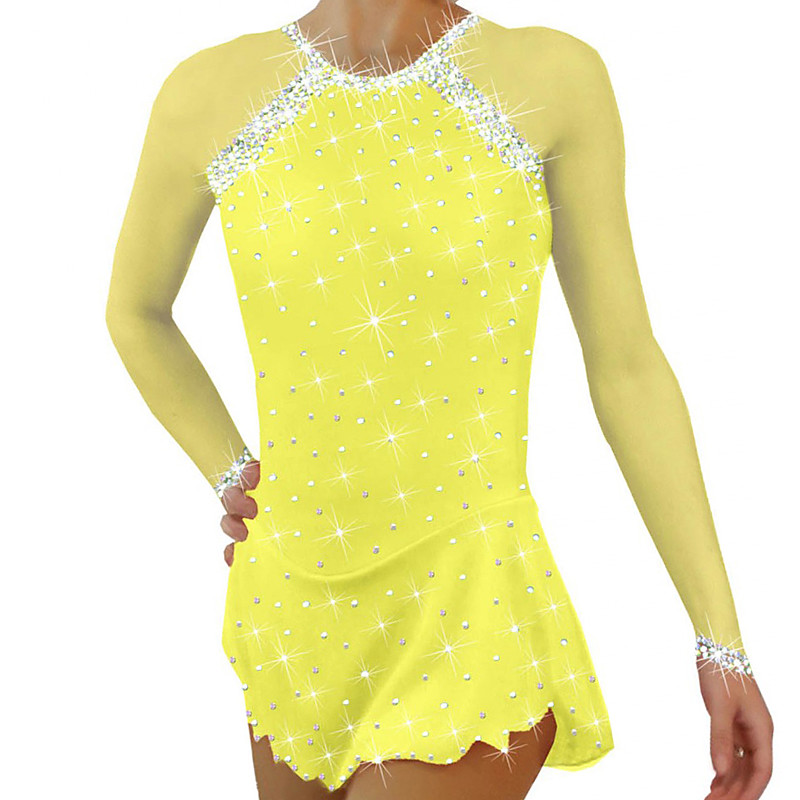 Figure Skating Dress Women's Girls' Ice Skating Dress Outfits Black White Yellow Mesh Spandex High Elasticity Training Practice Competition Skating Wear Patchwork Crystal / Rhinestone Long Sleeve Ice