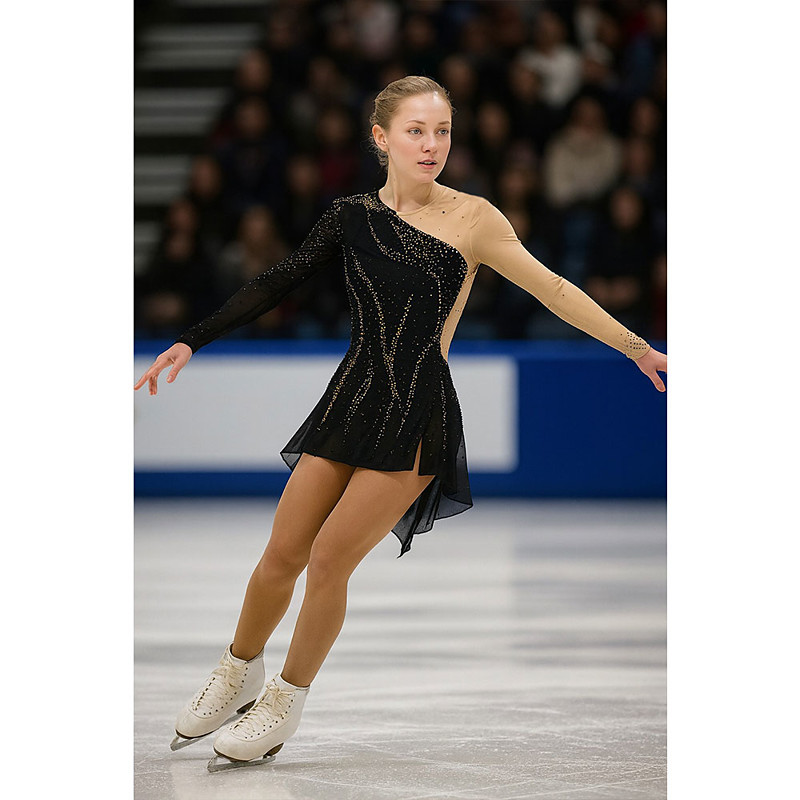 Figure Skating Dress Women's Girls' Ice Skating Dress Black Patchwork Open Back Mesh Spandex High Elasticity Training Competition Skating Wear Classic Crystal / Rhinestone Long Sleeve Ice Skating