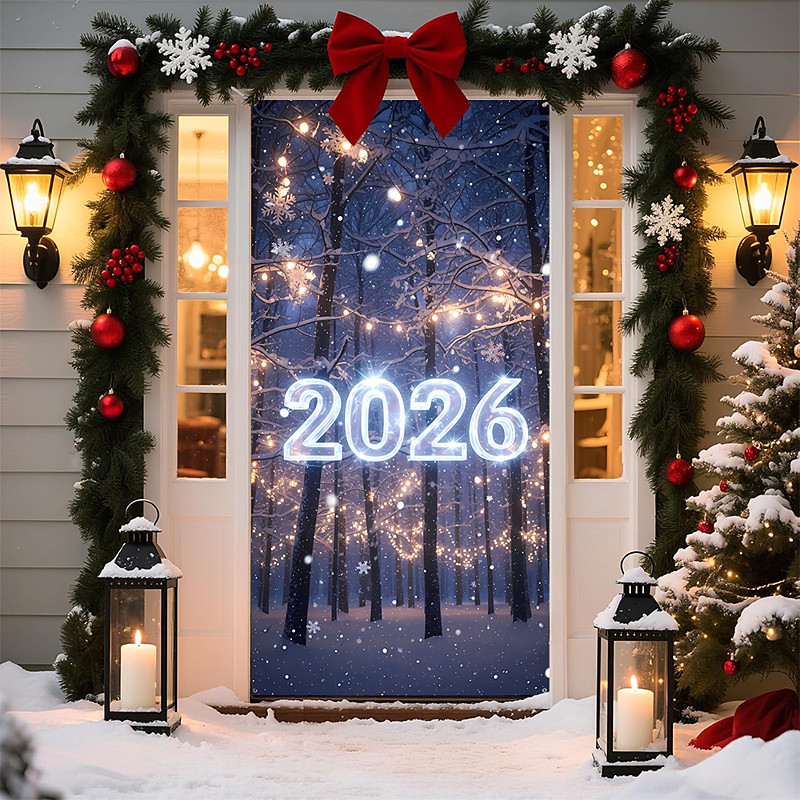 New Year Posters Door Cover Outdoor Banners Happy New Year 2026 Cute 3D Party Dorm Teens Room College Dorm Guys Man Cave Frat Bedroom Shooting Backgrounds Home Decor