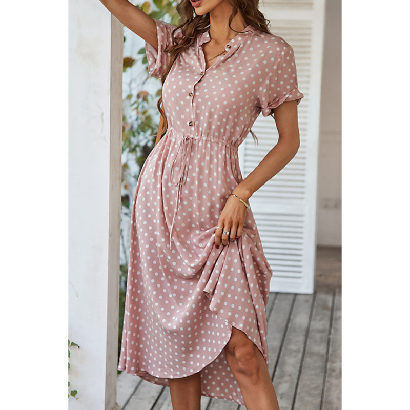 Women's Midi Dress Casual Dress Summer Dress Fashion Vacation Holiday Date Regular Fit Polka Dot Short Sleeve V Neck Black Pink Wine Dark Green Summer