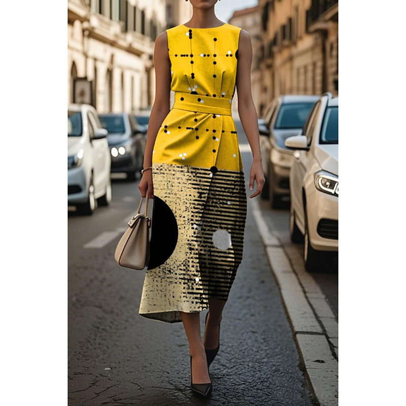 Women's Midi Dress Casual Dress Tank Dress Summer Dress Fashion Modern Daily Date Weekend Regular Fit Geometric Sleeveless Crew Neck Yellow Purple Orange Apricot Summer