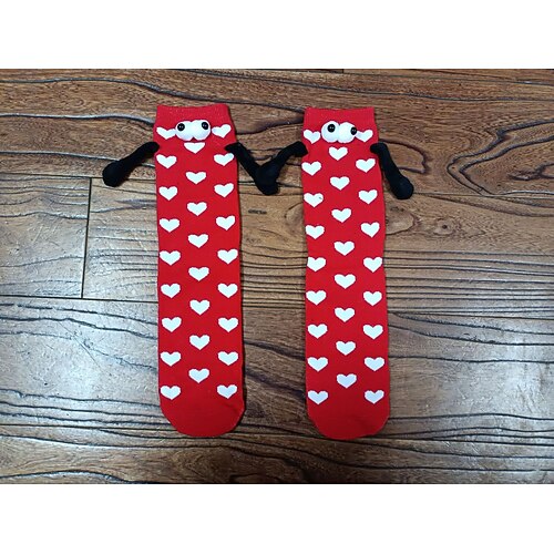 Herzförmige Magnetsocken für Paare zum Valentinstag, atmungsaktive, wadenlange Socken mit Händchenhalten-Motiv, das perfekte Valentinstagsgeschenk, ideal für Paare, kuschelig und stylisch für die