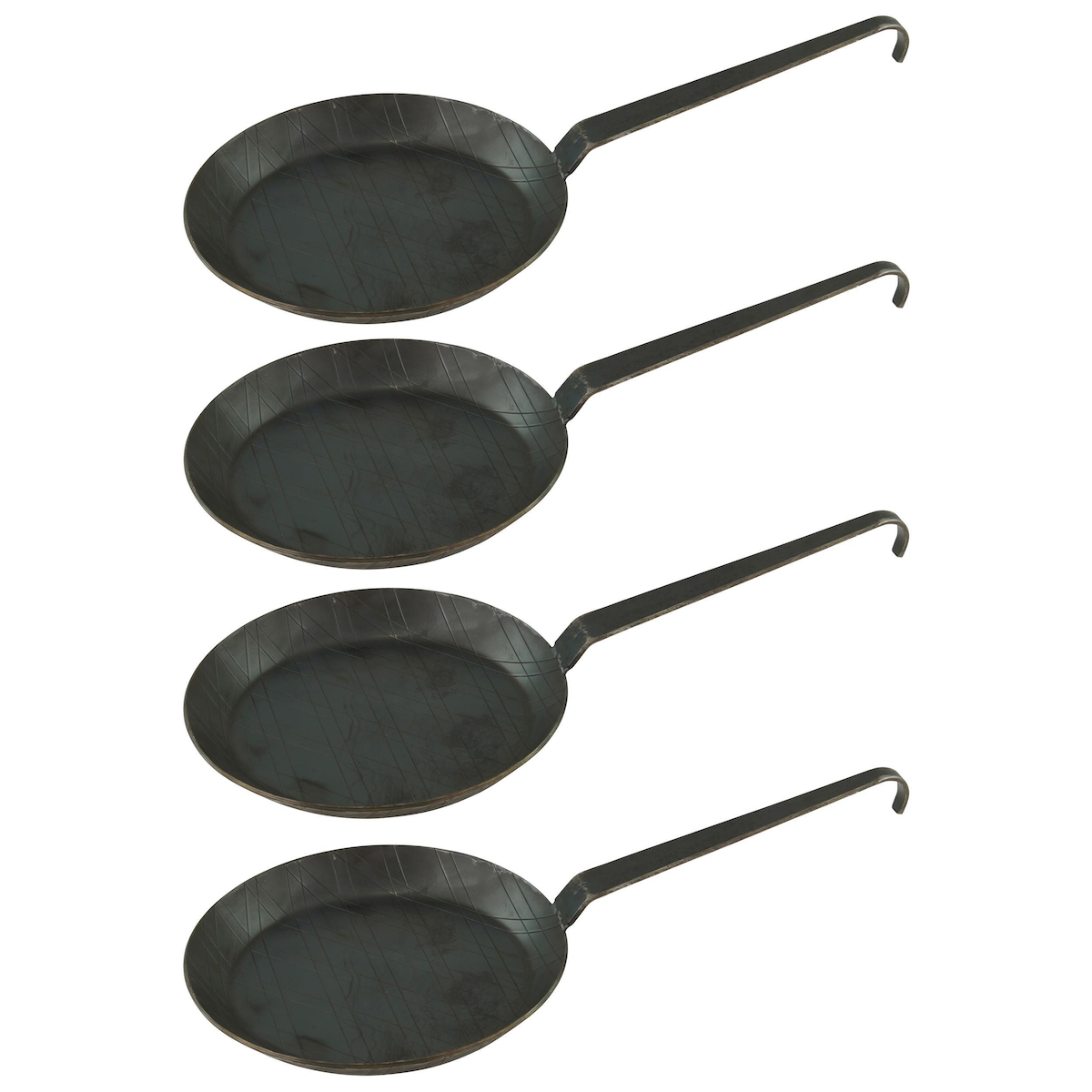 GVK ECO Schmiedeeiserne Brat- und Servierpfanne 4 Stück Ø 20 cm mit Hakenstiel
